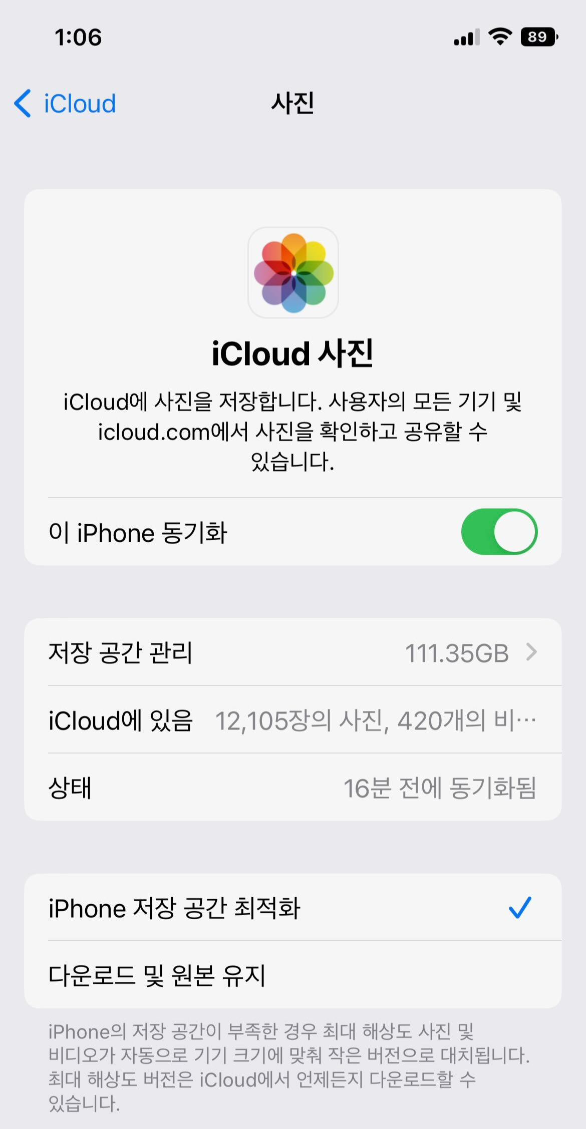: 모든 사진(동영상) 원본은 아이클라우드에 저장.